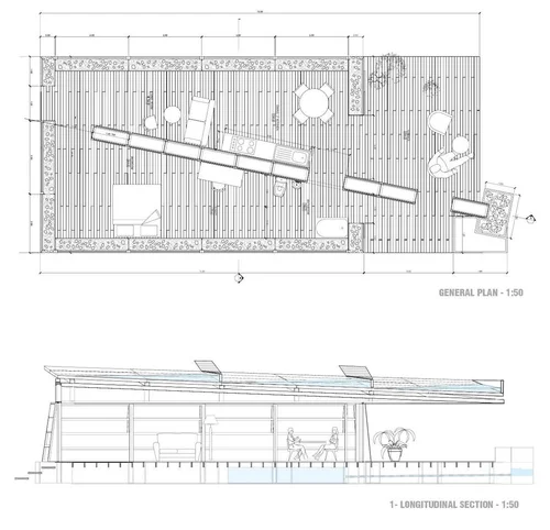 Connected to electronics, each unit can charge a battery to its full potential while releasing its surplus in a ventilation system attached to the unit to create a more confortable environment for the Rio climate. The battery-stored energy can be used at night to light the interior side of the panels as well as the ventilation system.